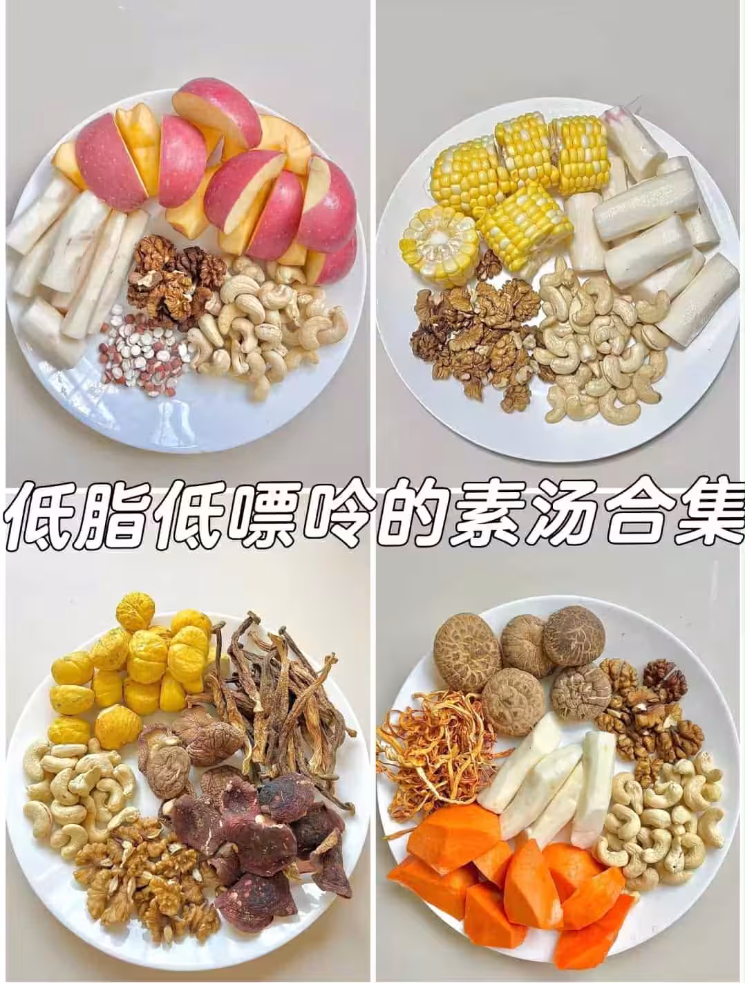 1⃣️蘋果淮山湯 蘋果、淮山、芡實、腰果、核桃、姜