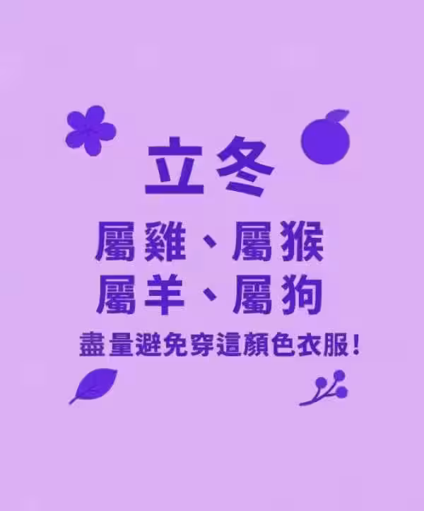 【立冬】屬雞、屬猴、屬羊、屬狗「儘量避免穿這顏色衣服」