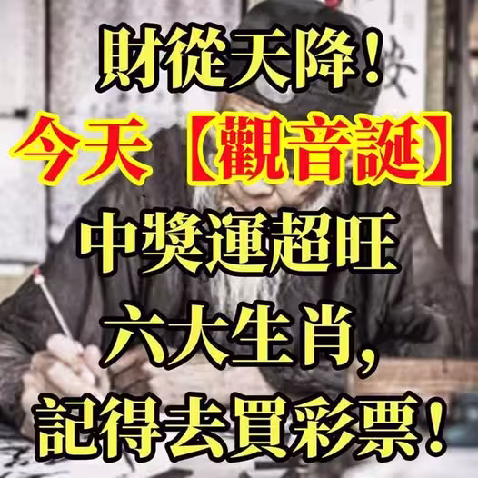 財從天降!今天【觀音誕】中獎運超旺,六大生肖記得去買彩票 !