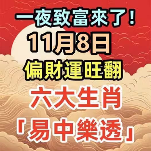 一夜致富來了!11月8日偏財運旺翻,六大生肖「易中樂透」