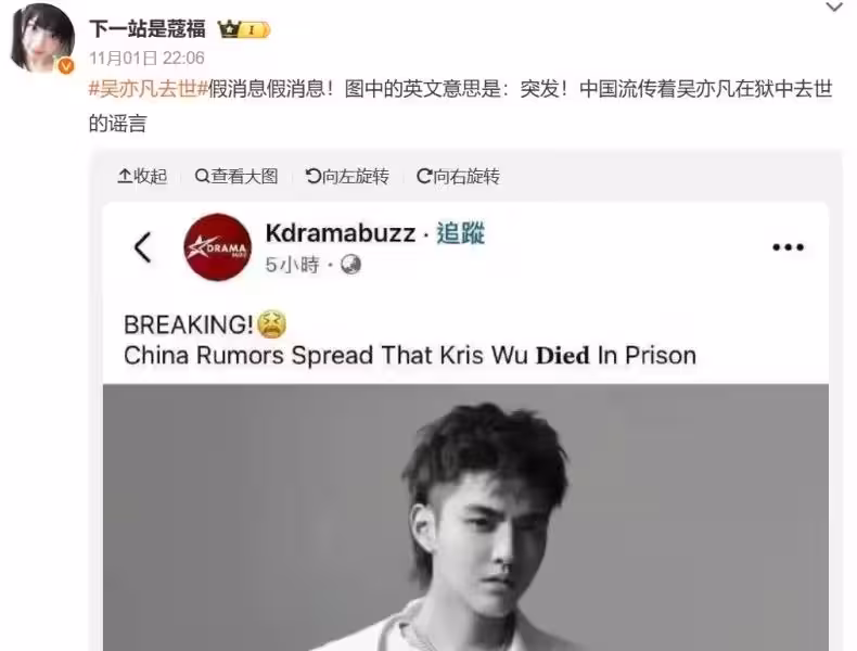 吳亦凡獄中離世的消息曝光後,立刻引發全網熱議,不過北京朝陽區公安局對此至今都尚未做出回應。據了解,吳亦凡是在北京的指定監獄服刑,目前並無可信消息顯示他已過世,遭質疑傳聞可能是被帶風向或造假。而自從入獄後,這已經是吳亦凡第5次被傳出死訊。