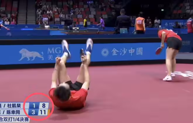 當時這一幕發生在本場比賽進行到第4局,陳幸同和徐海東得分之後,拿下本局3-1領先的時候,徐海東直接握緊雙拳倒地慶祝,非常激動,可實際上他記錯了混雙比賽的具體局數。這場球是7局4勝制,不是5局3勝制,3-1領先又如何?比賽還沒結束呢。
