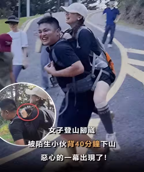 女子「登山腳崴」 被陌生小伙「背40分鐘」下山,噁心的一幕出現了