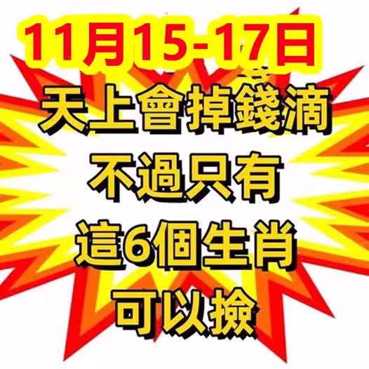 11月15到17日天上會掉錢滴,不過只有這6個生肖可以撿