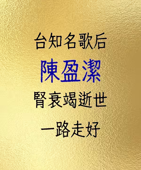 台知名歌后陳盈潔 腎衰竭逝世 一路走好