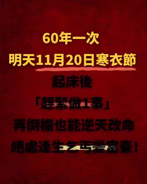 60年一次,就在明天!11月20日「寒衣節」,起床後「趕緊做一事」再倒楣也能逆天改命,乞丐也能變富翁