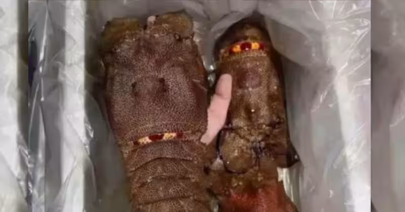 然而,當他將塑料袋打開的一剎那,驚訝寫滿了他的臉龐——兩隻巨大的海鮮出現在他面前。