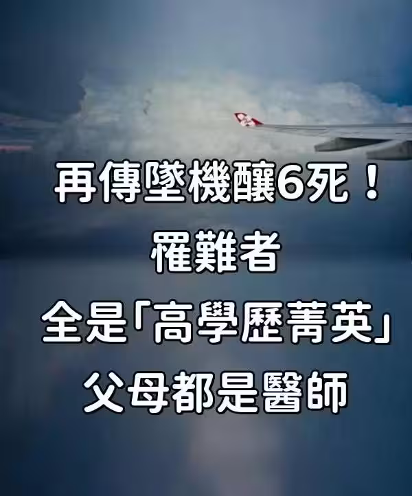 快訊/再傳墜機釀6死!罹難者全是「高學歷菁英」 父母都是醫師!