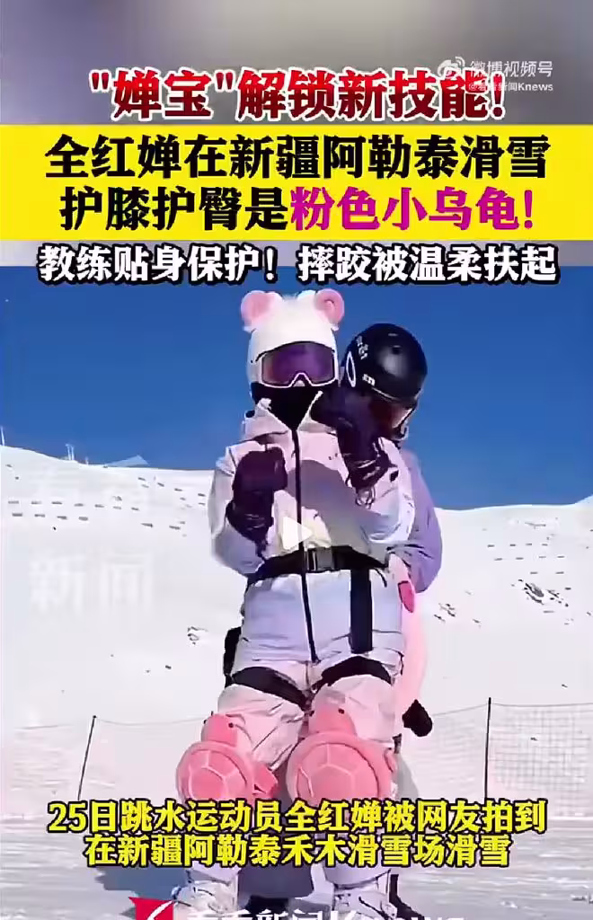 享受人生!全紅嬋阿勒泰滑雪休整放鬆,戴粉紅烏龜護膝護腰真的好可愛