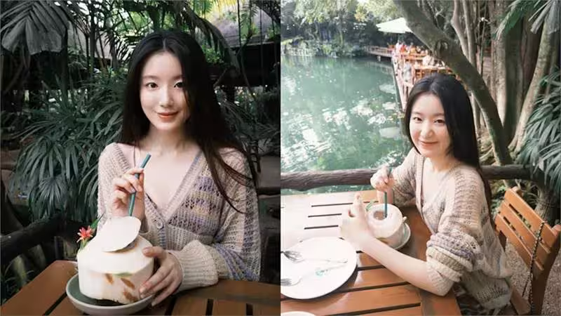 其中一張畫面中,她坐在綠意盎然的咖啡廳里,低頭喝椰子水,光是露出恬靜甜笑就把粉絲們迷得神魂顛倒。一系列私下美照曝光後,吸引大批網友圍觀,貼文上傳僅1天時間就聚集超過48萬人圍觀按贊。