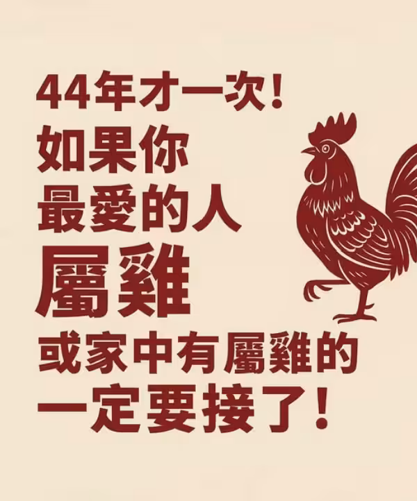 44年才一次!!! 如果你最愛的人屬雞或家中有屬雞的 一定要接了