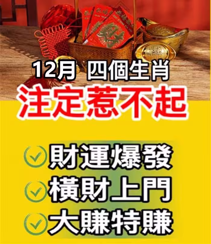12月註定惹不起的四個生肖,財運爆發,橫財上門,大賺特賺