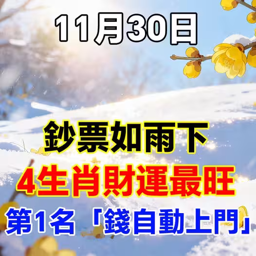 鈔票如雨下!11月30日,4生肖財運最旺,第1名「錢自動上門」