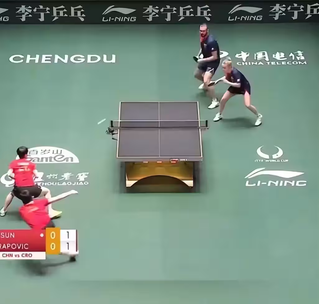孫穎莎通過精準擺短和落點控制牽制對手移動,為王楚欽接連贏得反拉機會,伊沃·本的反手強攻與阿拉波維奇的網前小球一度形成膠著,尤其在首局前半段緊咬比分,其搏殺式打法被評價為「黑馬級別的頑強」,但終因穩定性不足落敗。