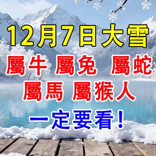 12月7日大雪 「屬牛 屬兔 屬蛇 屬馬 屬猴人」一定要看