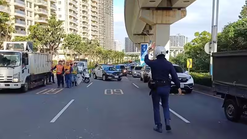 淡水淡金路拖板車失控狂鏟路燈 駕駛送醫不治