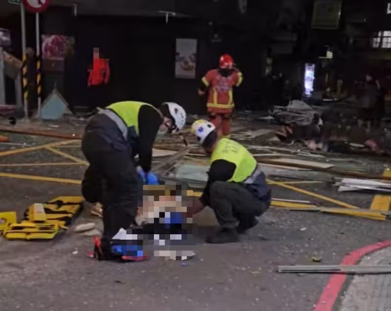 當時路過的女子4人、男子1人遭碎片砸傷,在場還有人慘遭炸出的碎片「擊倒」,躺在地上被緊急救治,現場一時宛如戰場。