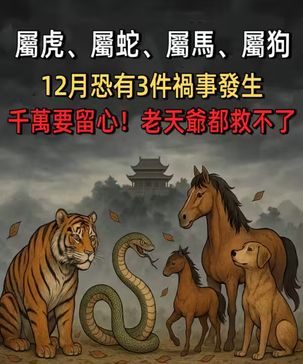 「 屬虎、屬蛇、屬馬、屬狗」 12月恐有3件禍事發生,千萬要留心!