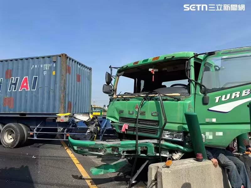 聯結車「折甘蔗」橫跨南北國道!破護欄橫空出世 自小客駕駛嚇到翻車