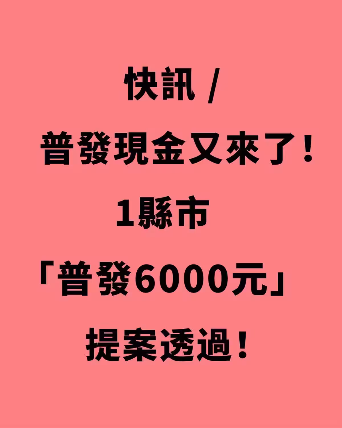 快訊 / 普發現金又來了! 1縣市「普發6000元」 提案透過!
