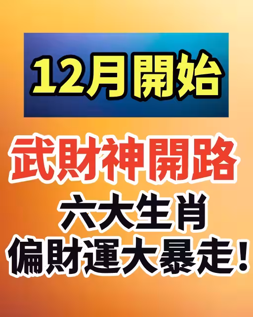 12月開始,武財神開路 六大生肖 偏財運大暴走!