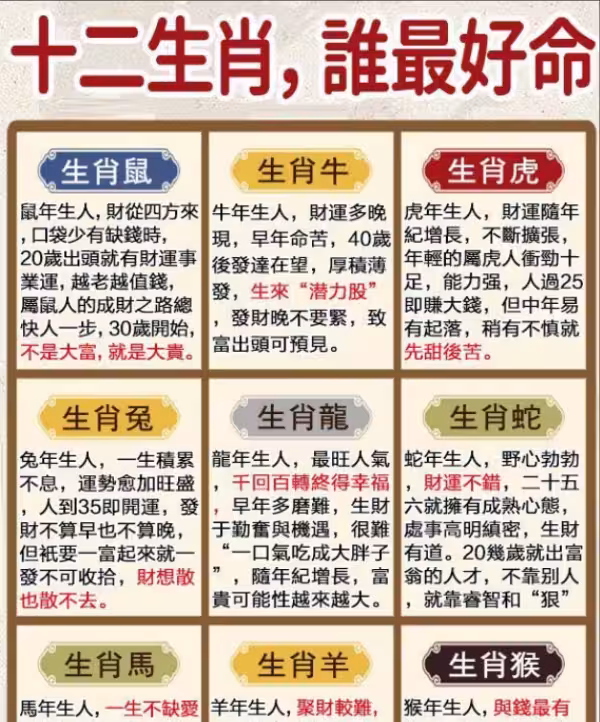 6個生肖天生帶財,特別是第二名,錢多得花不完!