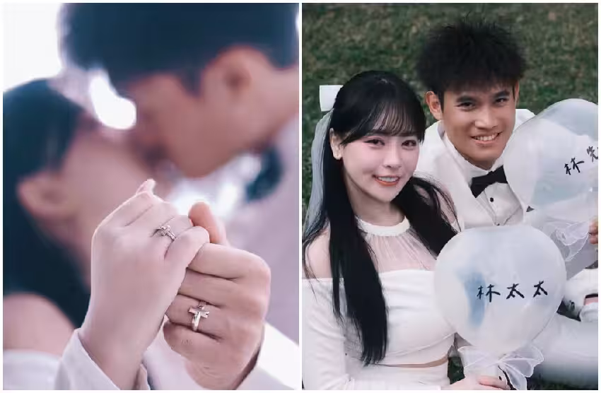 前啦啦隊女神登記結婚 !曬婚戒甜吻樂天游擊手林承飛