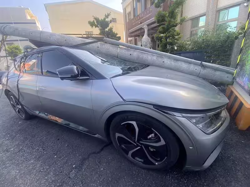 差一點殉職!台南警局前女警轎車「遭倒塌電線桿砸毀」