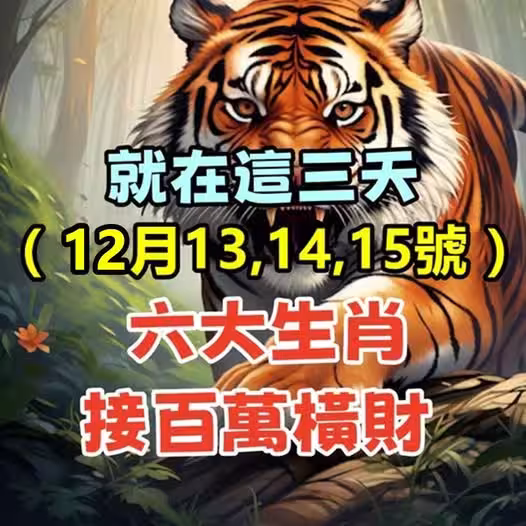 就在這三天 (12月13、14、15號)六大生肖,接百萬橫財