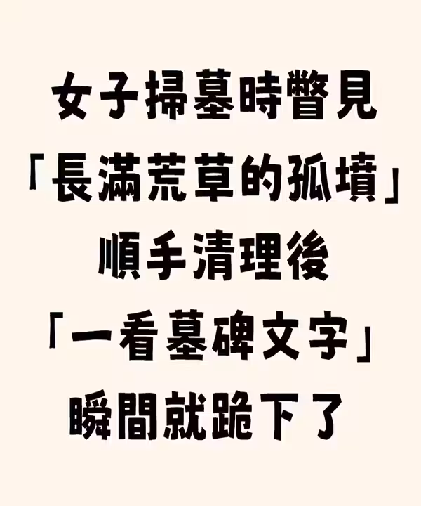 女子掃墓時瞥見「長滿荒草的孤墳」 順手清理後「一看墓碑文字」瞬間跪下!