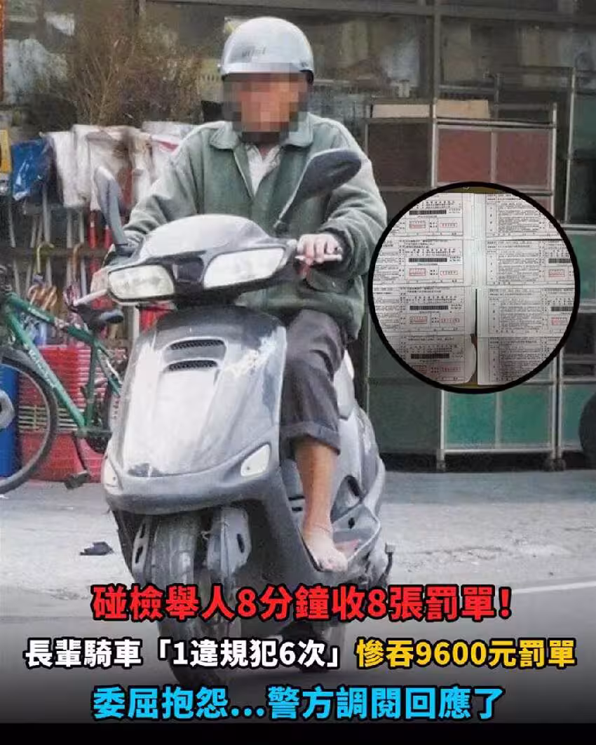 8分鐘猛收8張罰單!長輩騎車碰檢舉人「1違規連犯6次」委屈慘吞9600元罰單,警方調閱回應了