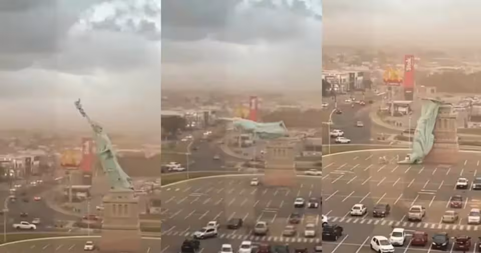 巴西南部城市瓜伊巴(Guaiba)近期遭遇強烈暴風,當地大型商場哈凡(Havan)外的自由女神像複製品竟被吹倒,數秒內倒塌,所幸無人受傷,也未造成財物損失。事發過程全被附近民眾拍下,分享到網上後,迅速在社群引發熱議。