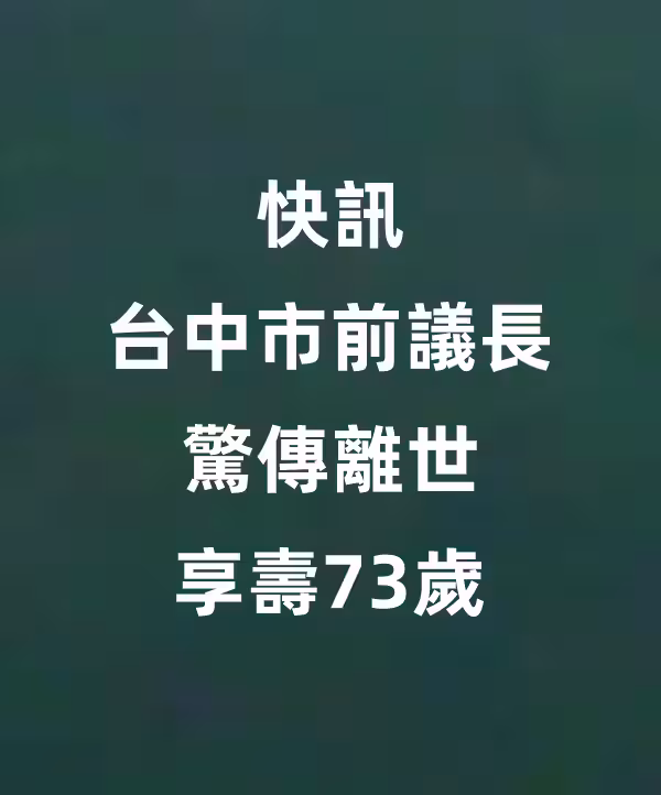 快訊/台中市前議長驚傳離世 享壽73歲