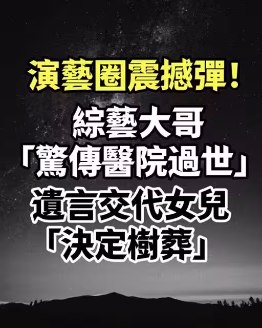 演藝圈震撼彈!綜藝大哥「驚傳醫院過世」 遺言交代女兒「決定樹葬」