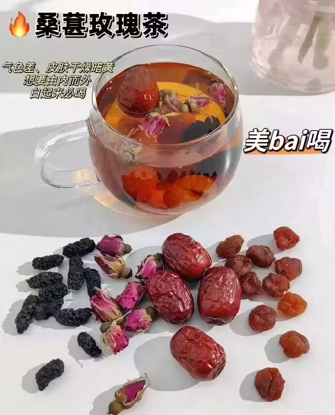 素顏發光的秘密!桑葚滋陰煥白,玫瑰提亮膚色,喝出由內而外的透亮感,黃黑皮也能逆襲冷白皮~