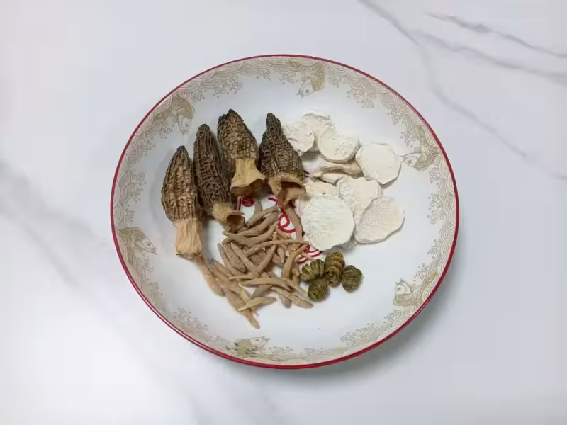 羊肚菌3-4個、太子參20克、淮山20克、石斛3-4粒、瘦肉300克