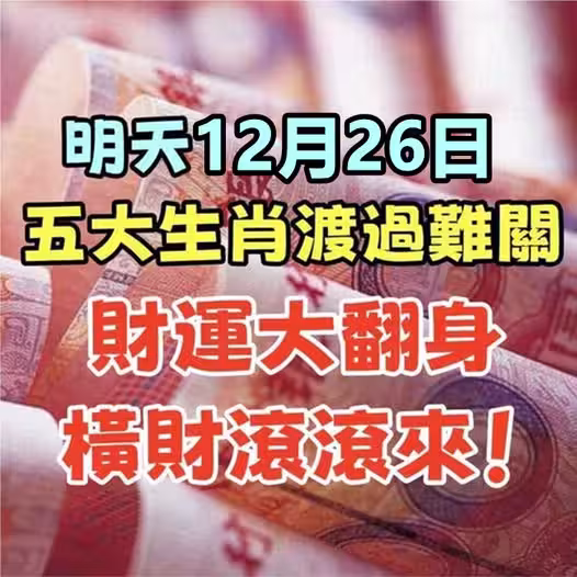 明天12月26日,五大生肖渡過難關,財運大翻身,橫財滾滾來!