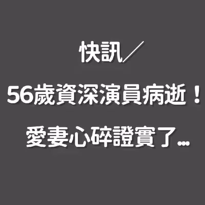 快訊/56歲資深演員病逝! 愛妻心碎證實了!