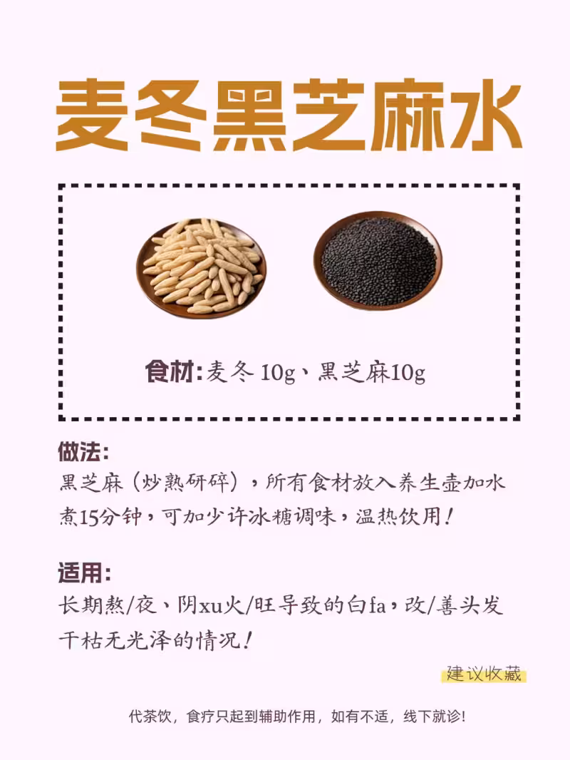 🔹 食材:麥冬 10g、黑芝麻 10g