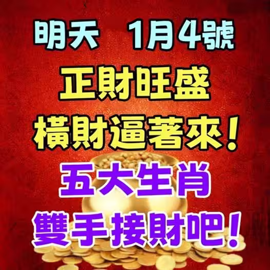明天1月4號正財旺盛,橫財逼著來!五大生肖雙手接財吧!