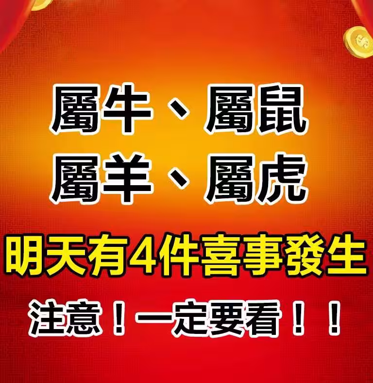 「屬牛、屬鼠、屬羊、屬虎」明天有「四件喜事」發生,身邊有的恭喜了!