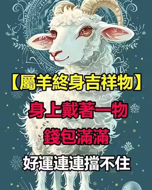 【屬羊終身吉祥物】身上戴著一物,錢包滿滿,好運連連擋不住 親愛的生肖羊朋友們,大家好!在這繁華的世界裡,我們如同一葉扁舟,漂泊在運勢的海洋中。