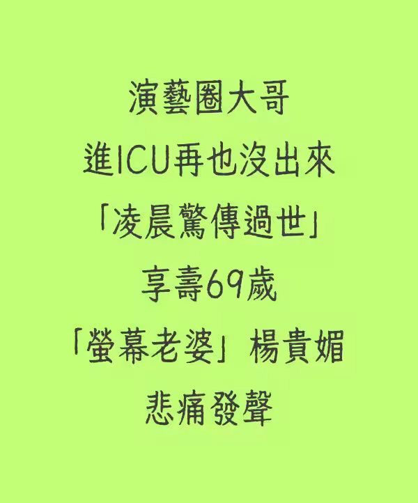 快訊/演藝圈大哥進ICU再也沒出來「凌晨驚傳過世」享壽69歲「螢幕老婆」楊貴媚悲痛發聲!!