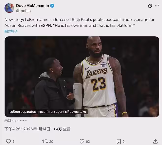 湖人怒了!點名交易里夫斯!詹姆斯趕緊撇清關係