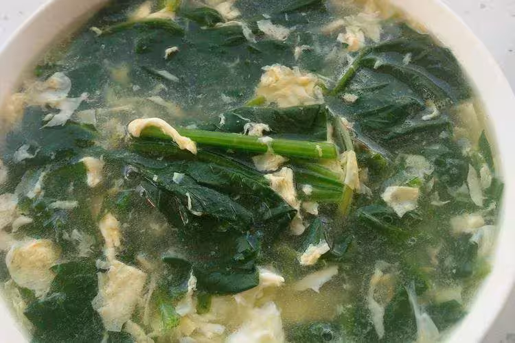 鍋內加水燒開,辣椒葉子倒進鍋內煮二三分鐘,直至辣椒葉子完全熟透,再把雞蛋倒進鍋內,讓它們的味道能夠互相融合,辣椒葉雞蛋湯就做好了。