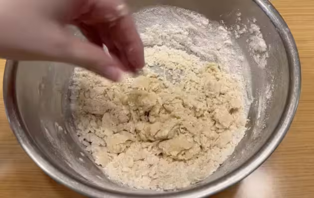現在做皮,雞蛋和蔗糖混合,加芥花籽油和水,混合,加入過篩的低筋麵粉,攪拌均勻後,搓揉成團,用保鮮紙包裹,靜置30分鐘