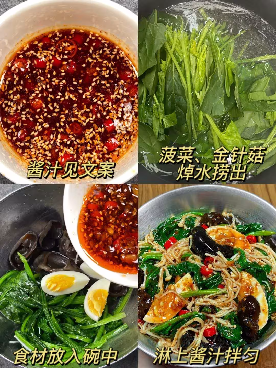 菠菜木耳拌金針菇,簡單好吃又掉秤,不愛吃菠菜的我愛上了這個吃法!!