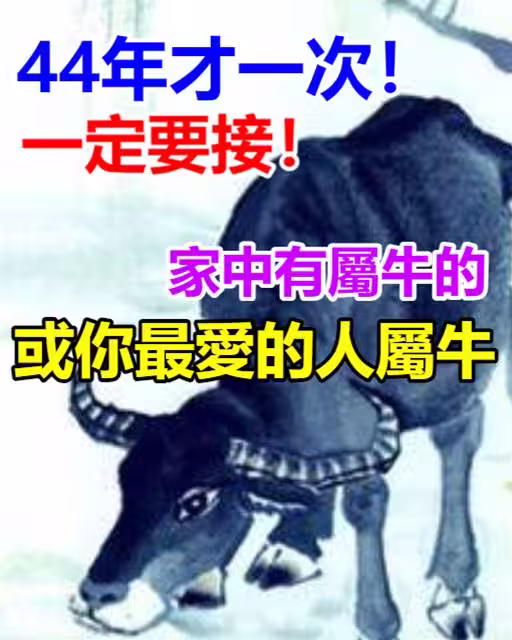 44年才一次!如果你最愛的人是屬牛,或家中有屬牛的, 一定要接!