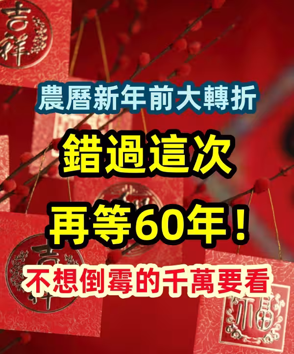 農曆新年前大轉折,錯過這次再等60年!不想倒霉的千萬要看!