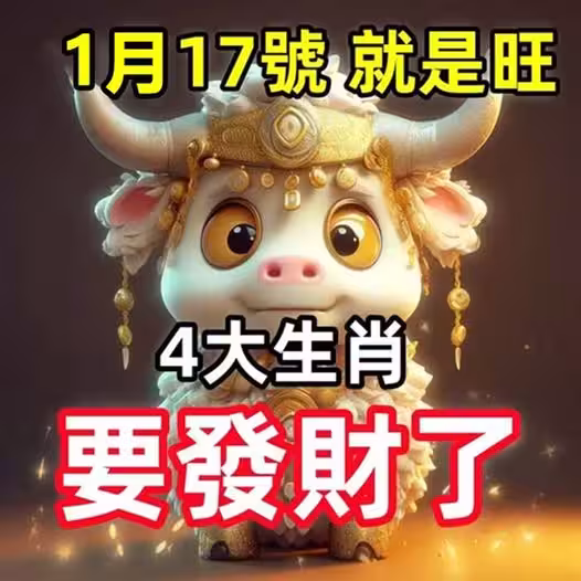 生肖牛:最近運勢上升明顯,尤其在1月17日這天,財星高照,偏財運尤其旺盛。 可能會有意外之財降臨,比如投資回報、彩票中獎或者朋友介紹的賺錢機會。 同時,工作上的表現也會得到上司的認可,收入有所增加。